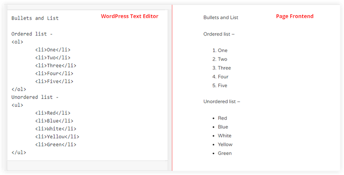 <ul> defines an unordered list (bulleted list), while <ol> defines an ordered list (numbered list).